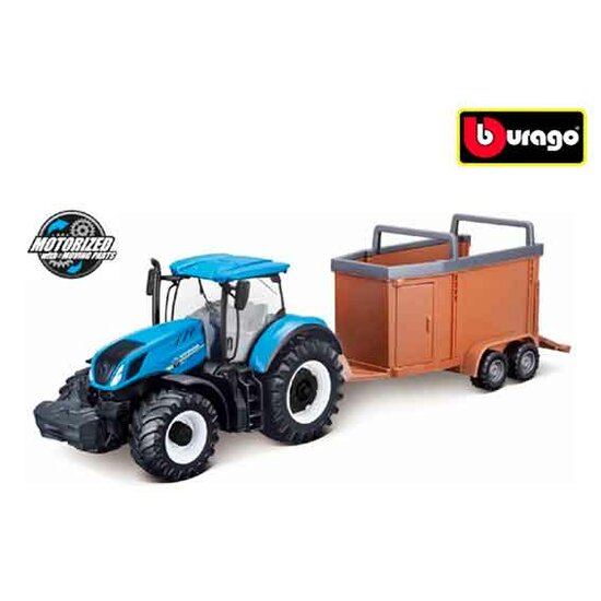 Bburago 520387 - New Holland met veetrailer